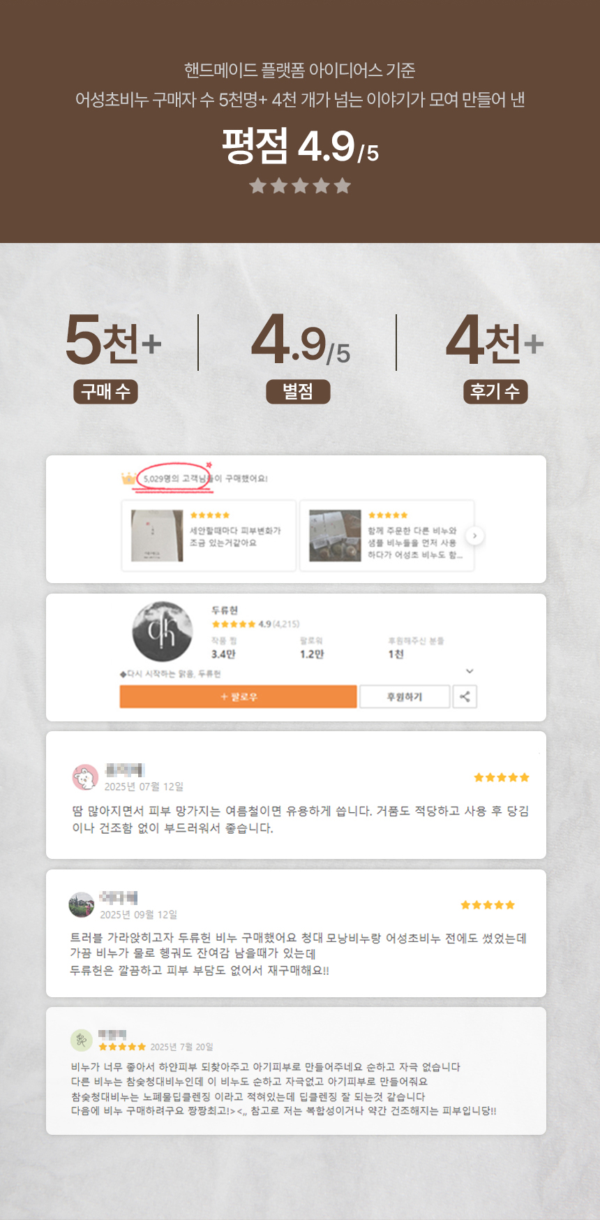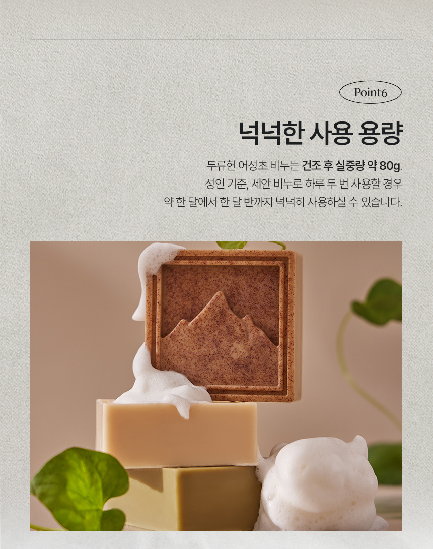 1) 화장품 사용 시 또는 사용 후 직사광선에 의하여 사용부위가 붉은 반점, 부어오름 또는 가려움증 등의 이상 증상이나 부작용이 있는 경우 사용을 중지하고 전문의 등과 상담해주세요 2) 피부에 상처 및 습진, 피부염 등의 이상이 있는 부위에는 사용하지 마세요. 3) 보관 및 취급 시의 주의사항 가)어린이의 손이 닿지 않는 곳에 보관할 것 나)직사광선을 피해서 보관할 것 4)눈에 들어갔을 때는 깨끗한 물로 씻어 주세요. 5)사용중이나 보관시 물기가 잘빠지는 비누받침대나 거품망을 사용해주세요. 6)인체 세정 이외의 목적에는 사용하지 마세요. 7)두류헌 천연비누는 피부 질환을 치료하는 의약품이 아니며 주성분만을 표시합니다. 8)수작업으로 제작되는 비누의 특성상 중량이나 모양, 색, 무늬가 조금씩 다를 수 있습니다.